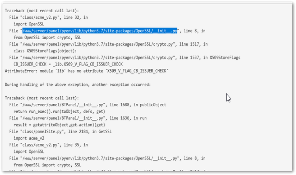 SSL error aaPanel, AttributeError: module ‘lib’ has no attribute ‘X509 V FLAG CB ISSUER CHECK’